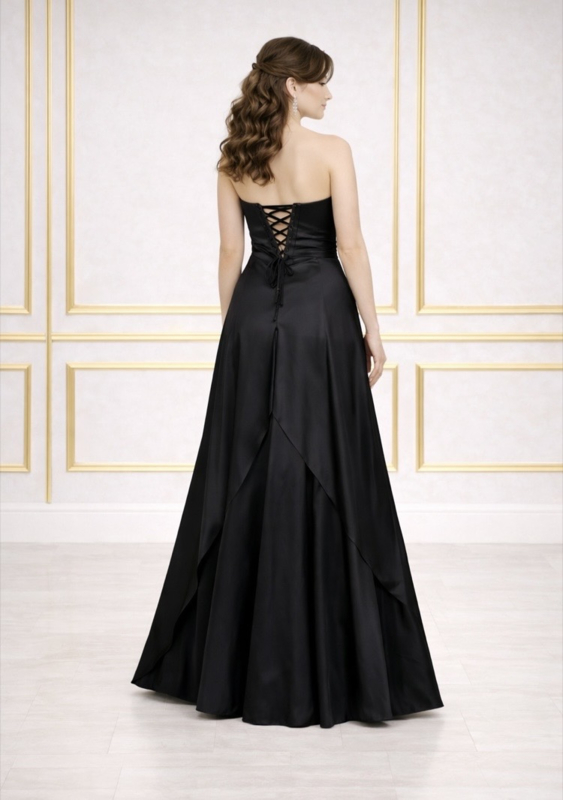Zwarte strapless galajurk satijn maat 34 -42