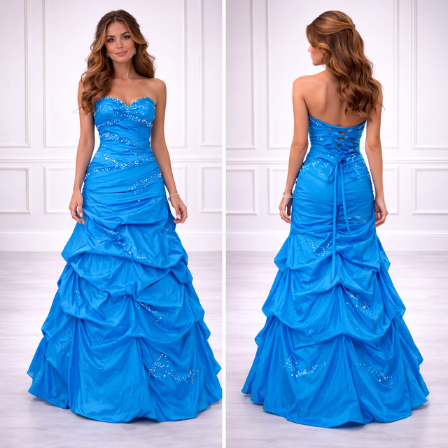 Droom weg in deze betoverende prinsessenjurk, perfect voor een schoolgala, als galajurk voor prom, gekleurde trouwjurk, of als jurk voor prinses carnaval of koningin van de schutterij.