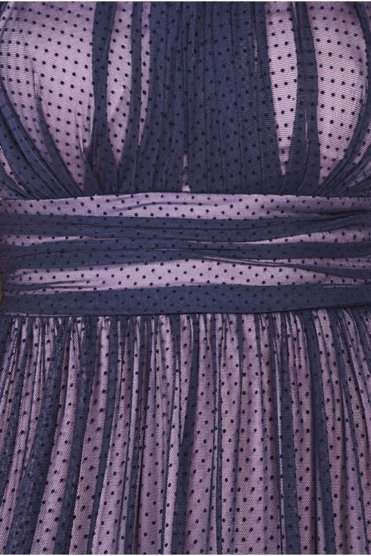 De Corsage Halternek Dobby Mesh Maxi combineert op prachtige wijze verschillende texturen.