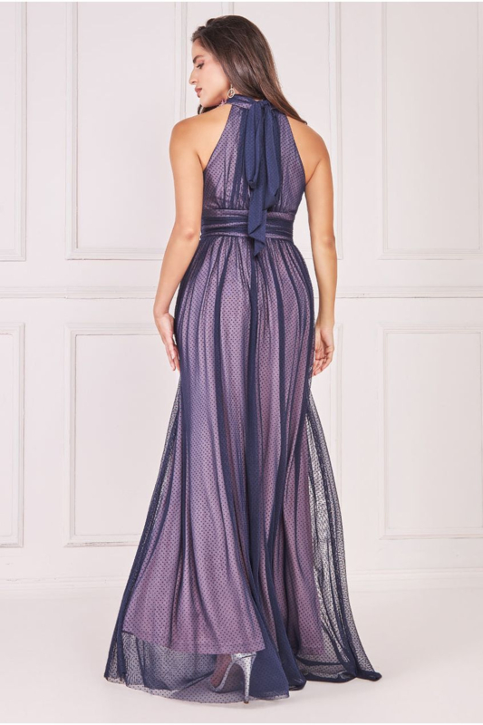 De verfijnde Corsage Halternek Dobby Mesh Maxi is een betoverende avondjurk die speciaal ontworpen is om je bijzondere gelegenheden naar een hoger niveau te tillen.