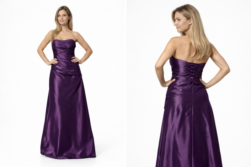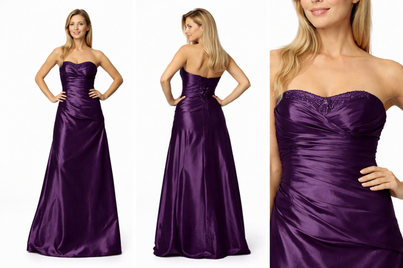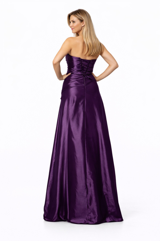 Maak een onvergetelijke entree in deze luxe paarse galajurk met koninklijke allure.