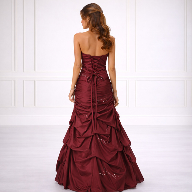 Deze schitterende strapless galajurk met sweetheart decolleté en lage taille accentueert het figuur op elegante wijze.
