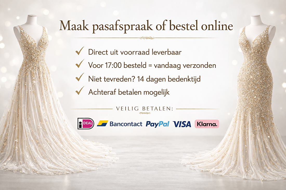 Bestel eenvoudig online of kom passen in onze showroom in Diemen (nabij Amsterdam).