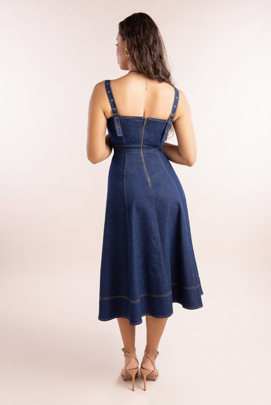 Artikelnummer: AF 8907Deze denim cocktailjurk is op voorraad en direct leverbaar bij Aryan Fashion.