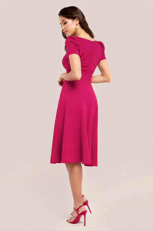 Artikelnummer: AF 888888Deze donkerroze cocktailjurk is op voorraad en direct leverbaar bij Aryan Fashion.