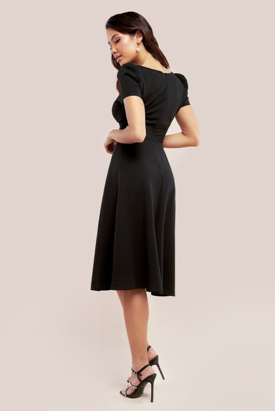 Artikelnummer: AF 6103Deze zwarte cocktailjurk is op voorraad en direct leverbaar bij Aryan Fashion.