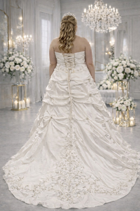 Hierdoor ontstaat een indrukwekkend en koninklijk effect, perfect voor de bruid die wil stralen op haar grote dag.