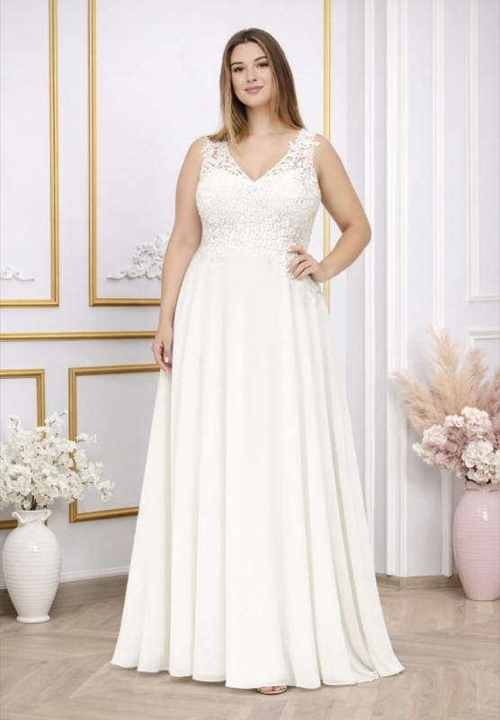 trouwjurk chiffon met luxe kant ivoor maat 38-42