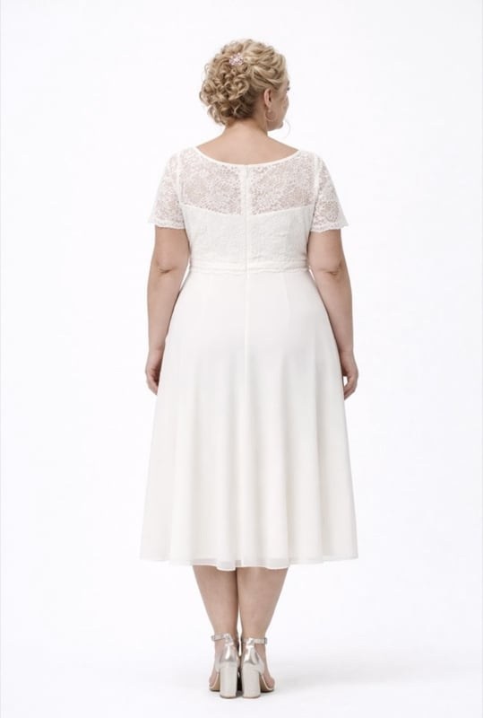 Korte trouwjurk ivoor maat 40-42 chiffon met kant | Tweede huwelijk
