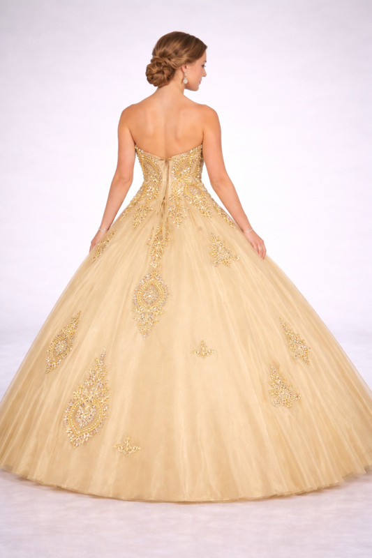 Gouden trouwjurk prinsessenjurk tule maat 44 46 48