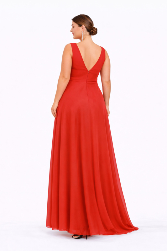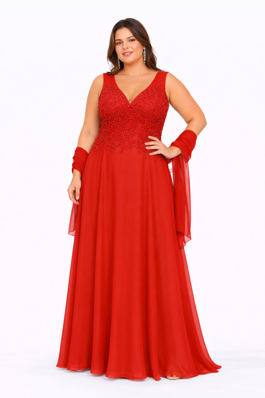 Deze elegante galajurk in grote maten combineert klassieke verfijning met moderne details.