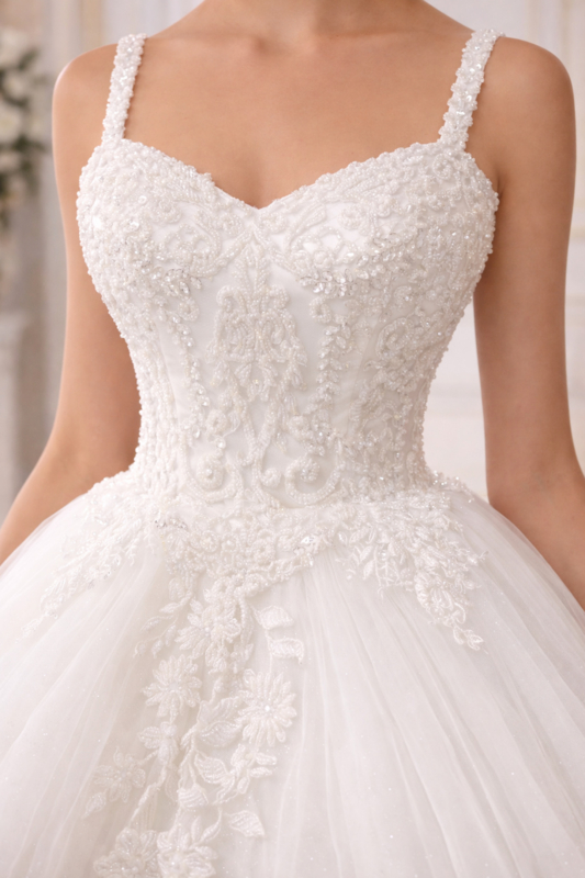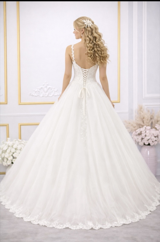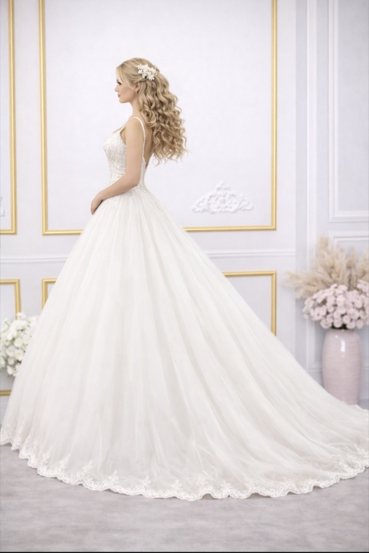 Deze witte prinsessen trouwjurk is perfect voor bruiden die op zoek zijn naar een romantische en opvallende trouwjurk met een sprankelende uitstraling.