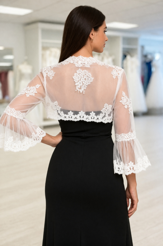 De bolero is ideaal om te dragen over avondjurken, cocktailjurken en trouwjurken.