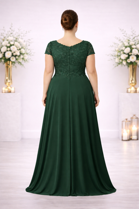 Ontdek deze schitterende plus size galajurk met elegante kapmouwen en een flatterende V-halslijn, speciaal ontworpen voor dames die op zoek zijn naar een perfecte mix van stijl en comfort.