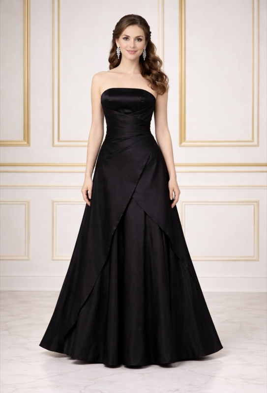 • Zwarte strapless galajurk satijn maat 34 -42
