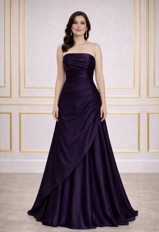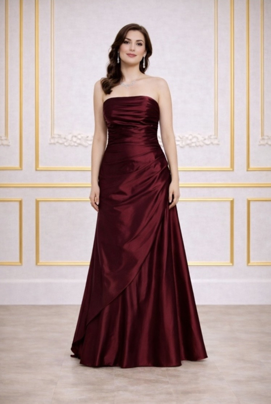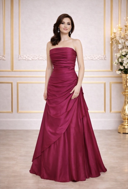 Strapless galajurk met verfijnd geplooid lijfje dat de taille…