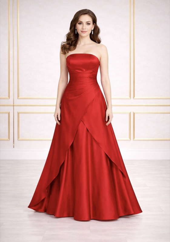 Rode strapless galajurk satijn maat 34-40