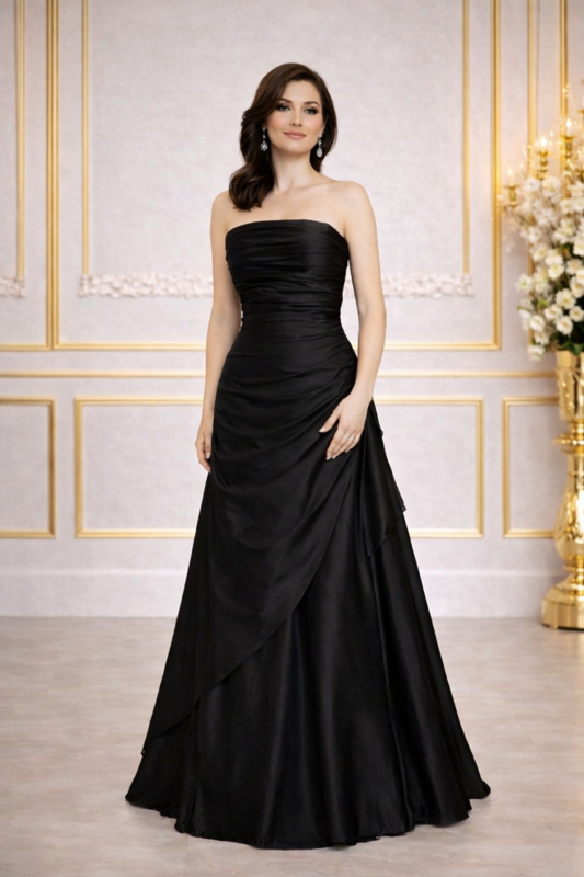 Zwarte strapless galajurk satijn maat 34 -42