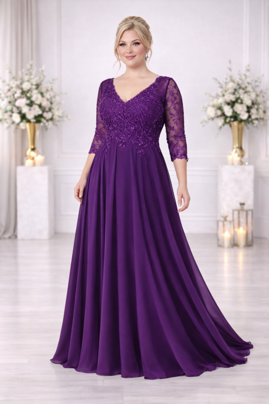 Bestel online of kom langs in de showroom.Adembenemende galajurk plus size met V-decolleté en lange mouwen voor grote maten.