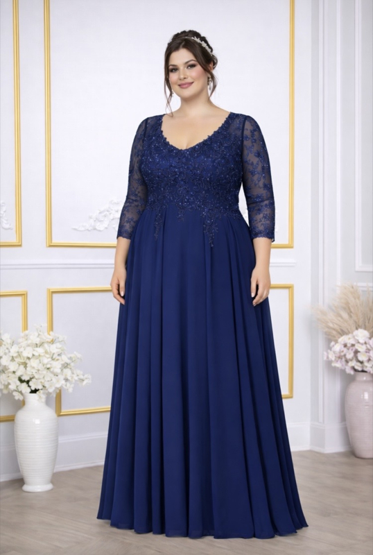 lange mouwen galajurk grote maat 44 t/m 60Marine blauwe galajurk is op voorraad, bestel online of kom langs in de showroom.