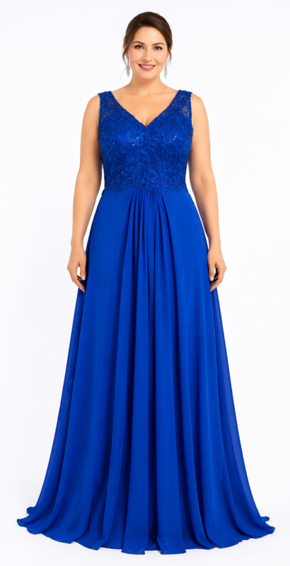 royalblauwe galajurk grote maat 50, 52, 54Royalblauwe avondjurk is op voorraad.
