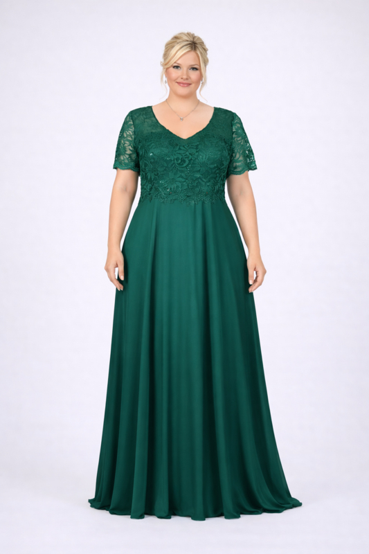 groene galajurk grote maat 50, 52, 54Groene galajurk is op voorraad.