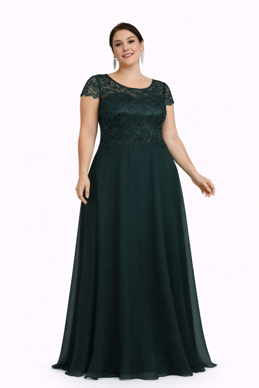 grote maat galajurk groen 50, 52Groene grote maat avondjurk is op voorraad.